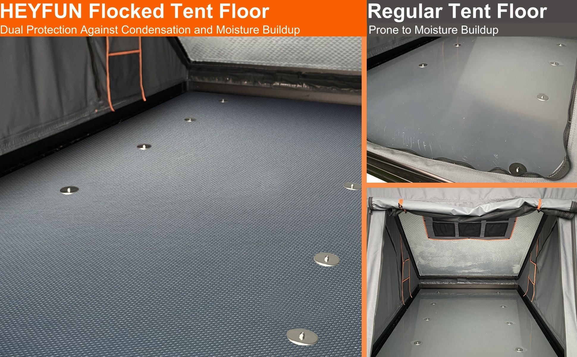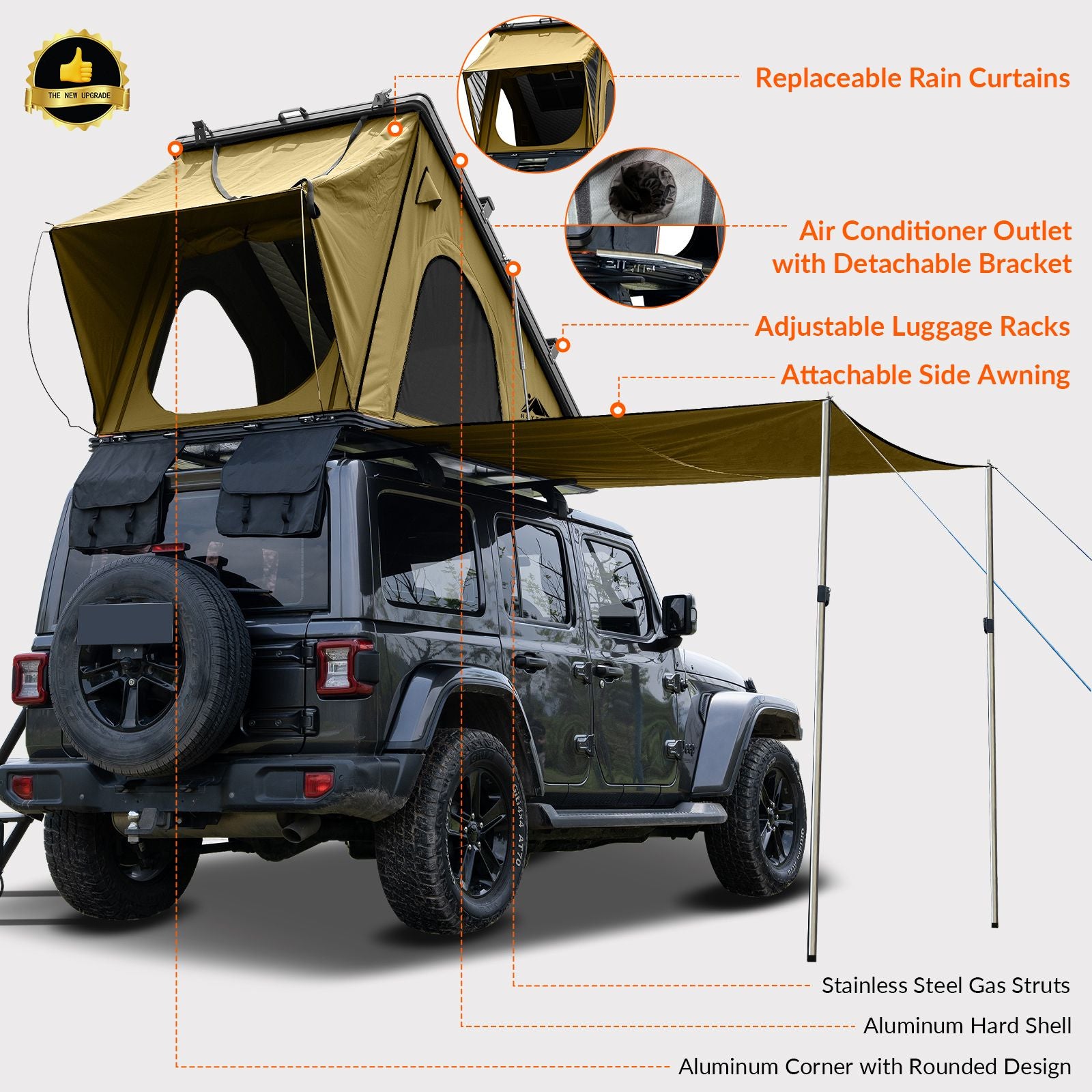 2. [Upgraded Roof Top Tent to 100% Market Excellence] - HEYFUN rooftop tents are standout options with premium features including extra attachable side awning, air conditioner outlet with detachable bracket, adjustable luggage racks and replaceable rain curtains, best travel solution for carrying more luggage and perfect choice for camping enthusiasts and seasoned adventurers of all levels valuing quality and affordability.