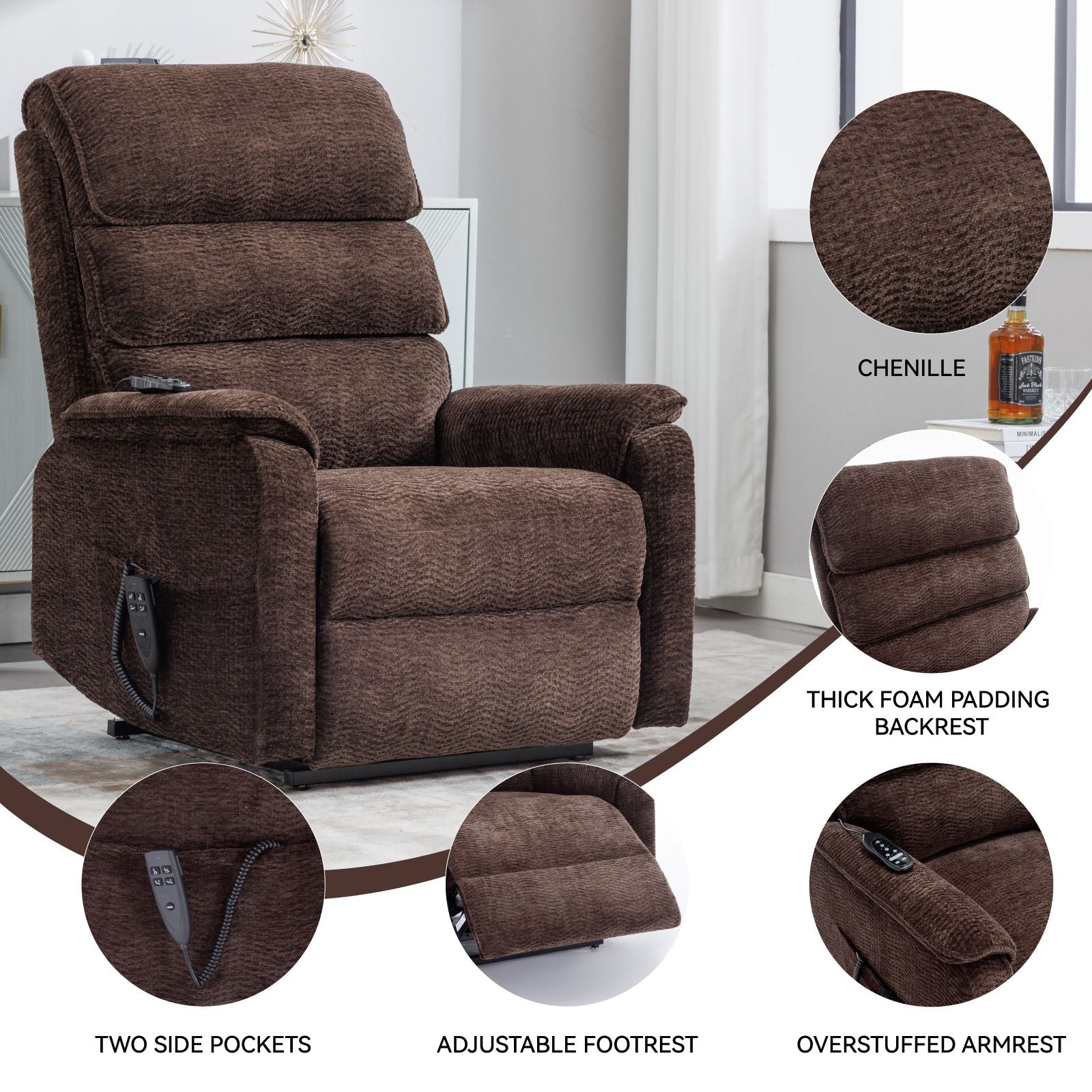Brown Chenille Dual Motor Infinite Position Up to 350 LBS Power Lift Recliner Chair with Power-Remote, Heat Massage and Heavy Duty Motion Mechanism