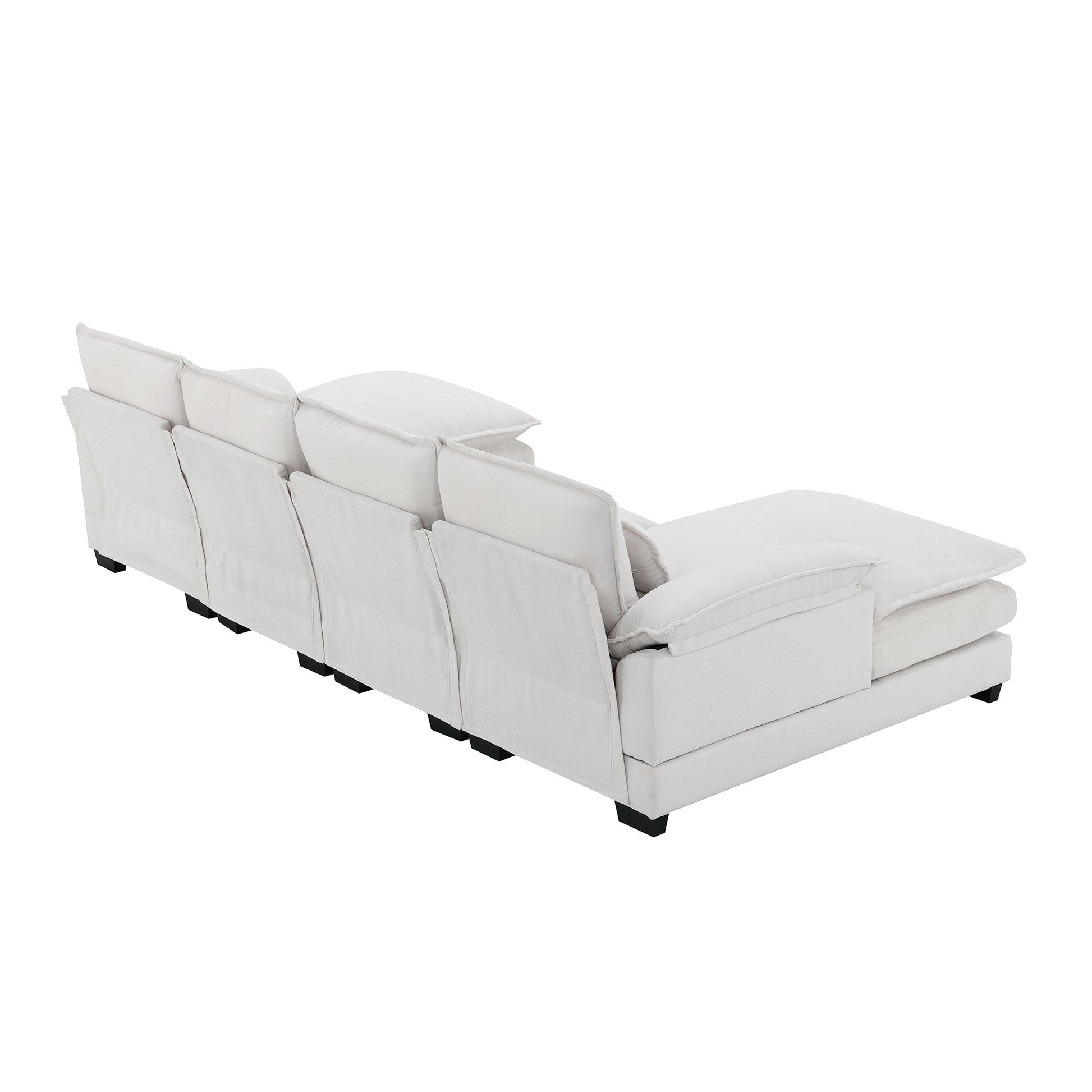 Comfortable design: The white sofa is made of high-quality chenille, which is soft, comfortable and durable.Armrest pockets on both sides of the sofa can relax your head, and there are also 4 lumbar pillows to give better lumbar support, making it easy to adjust your posture and reduce discomfort and fatigue.