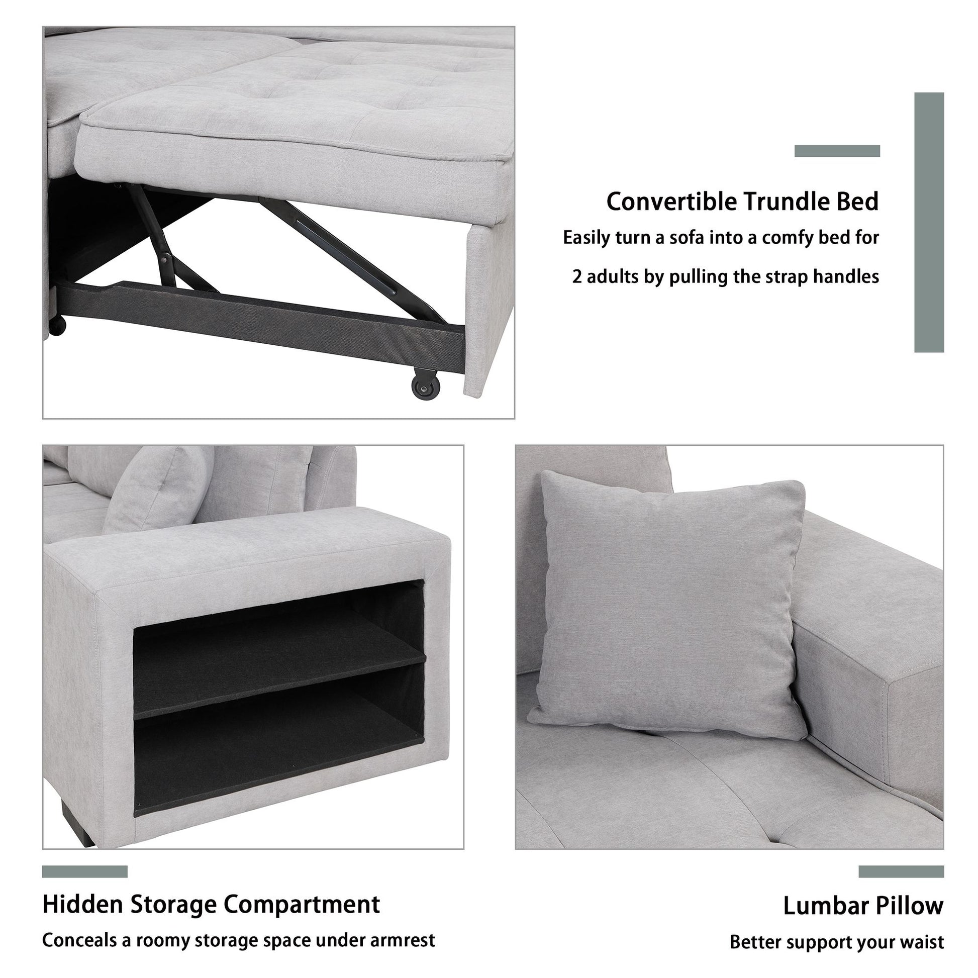 1.Practical Sleeper Sofa Bed - L-shape sofa can be easily converted into a bed. The equipped portable handle with the assistance of the bottom pulley device to quickly complete the bed transformation. If you often have overnight guests, then this could be a great solution.