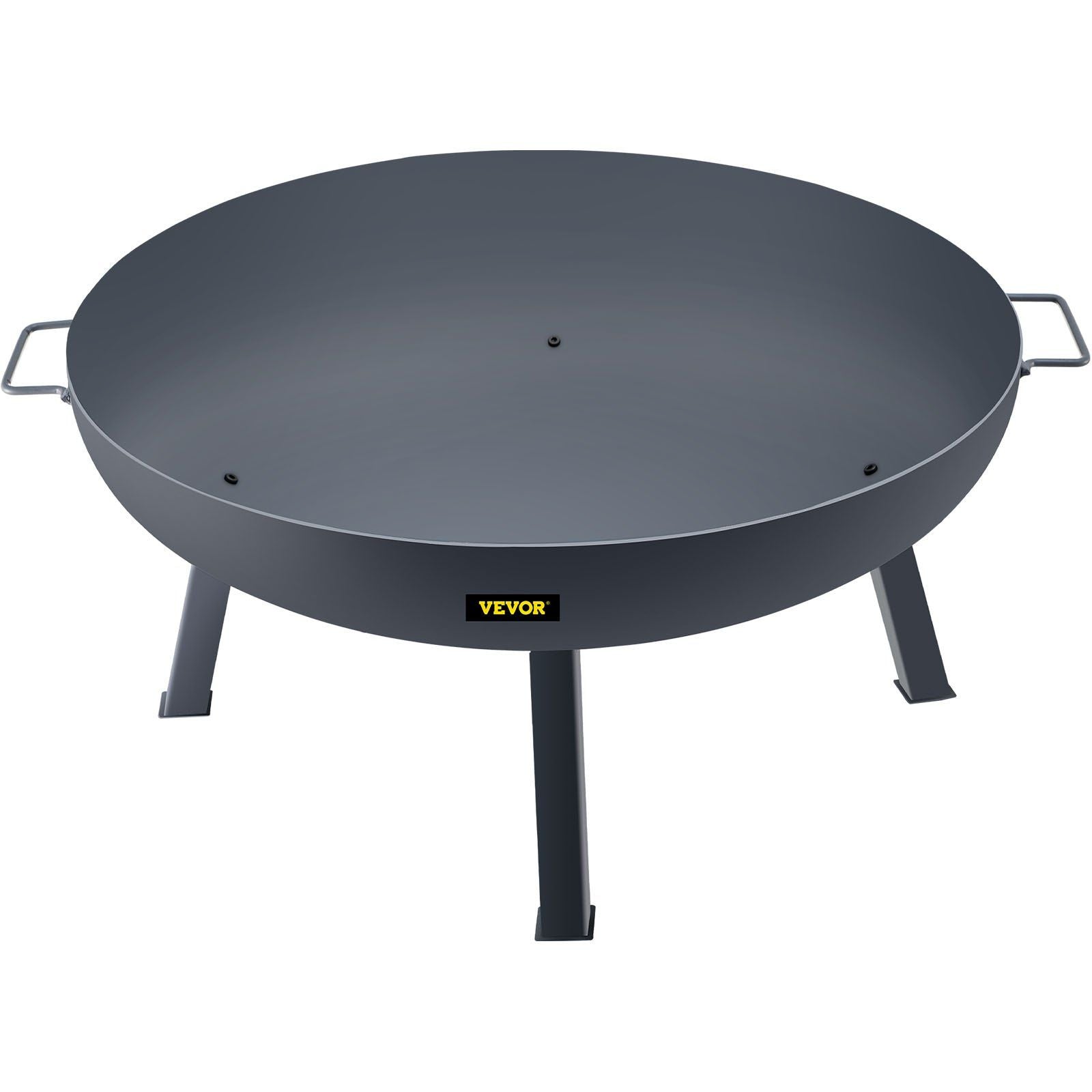 VEVOR Fire Pit Bowl, 34-Inch Diameter Round Carbon Steel Fire Bowl, Wood Burning for Outdoor Patios, Backyards & Camping Uses, with A Drain Hole, Portable Handles and A Firewood Stick, Black
