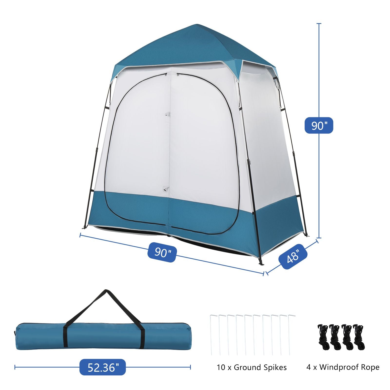 90x90x48" Portable Outdoor Pop UP Camping Shower Tent Enclosure, Shower Shelter, Changing Room, Dressing Tent, 2 Rooms, Instant Tent Blue/White RT