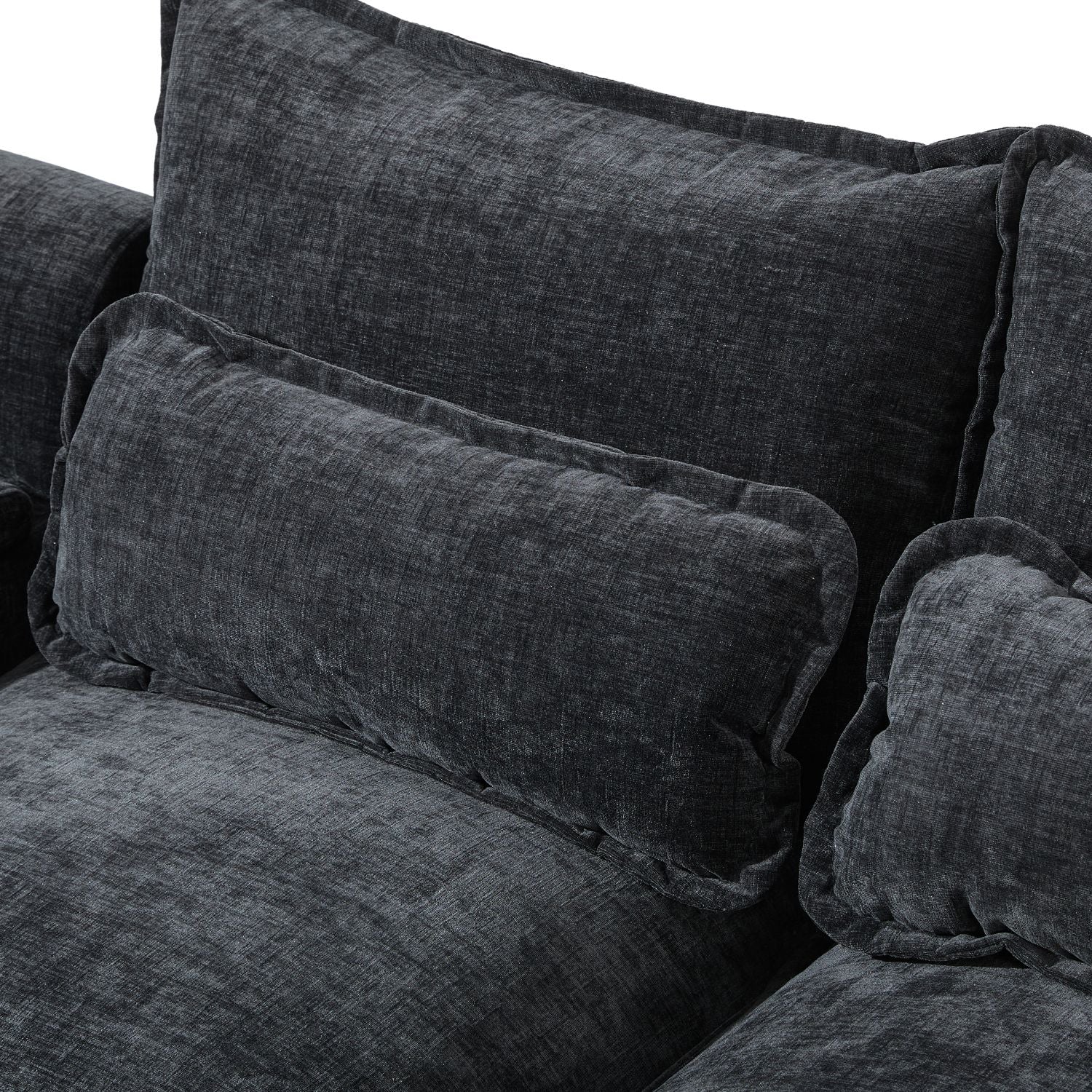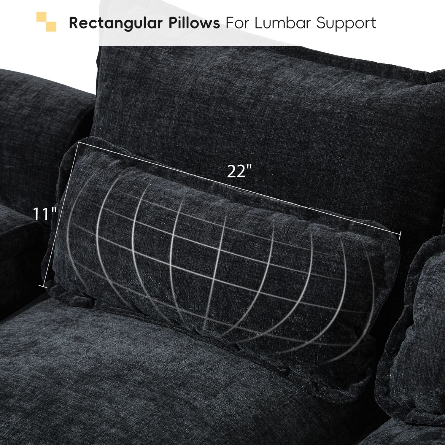 Comfortable design: The sofa is made of high-quality chenille, which is soft, comfortable and durable.Armrest pillows on both sides of the sofa can relax your head, and there are also 4 lumbar pillows to give better lumbar support, making it easy to adjust your posture and reduce discomfort and fatigue.