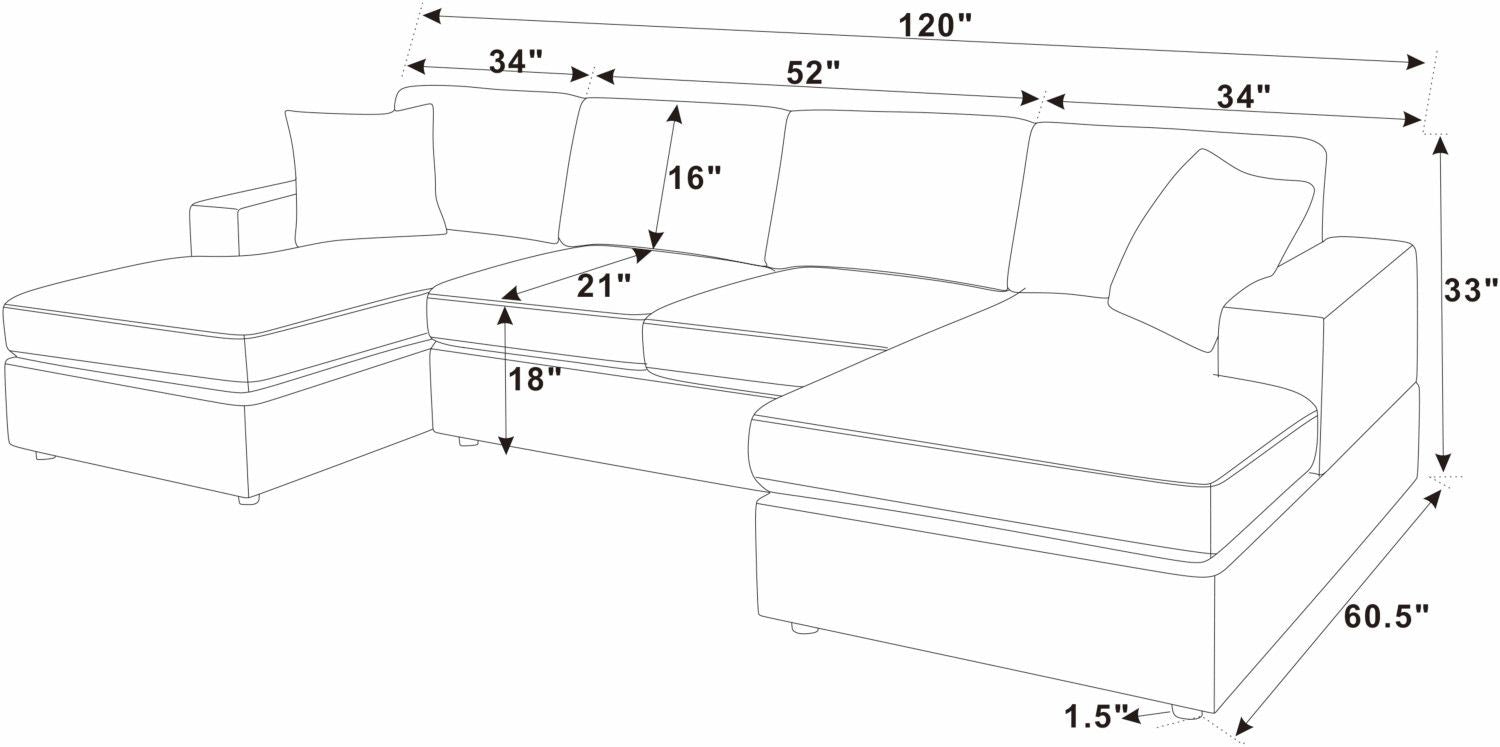 The 3-piece set includes 1 sofa seat and two chaise seats. Use a U-shaped configuration to gather around the coffee table for a board game, and switch to a large platform for your next nap or movie marathon.